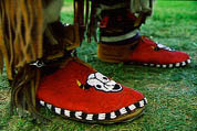 The Mountain Man gave the girl a string to sew onto her moccasins. Then told her that he was taking their son and going back to his people. The girl cried because she didn't want him to go. He wants her to follow, though, that's why he gave her that string for her moccasins.