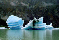 This glacier's name is Naludi. This is the story of how it came across the river and made a lake.